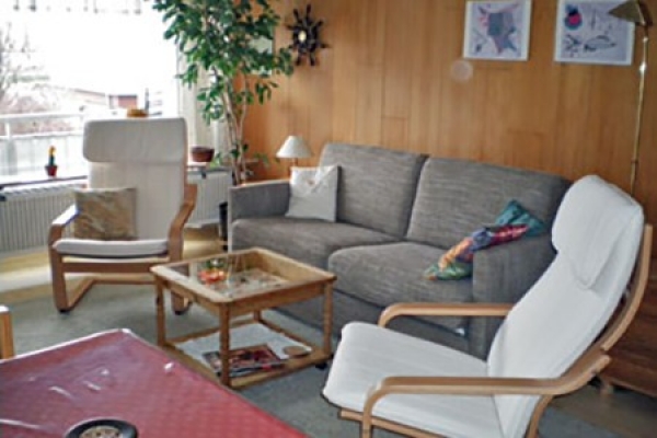 Die Ferienwohnung in Haus „Muschelbank“ ist eine 2-Zimmerwohnung mit 42 m² Wohnfläche. Sie hat ein Wohnzimmer mit Schlafcouch, ein Schlafzimmer mit Doppelbett und einen großen Einbauschrank. Das Bad hat eine Badewanne, die mit einer Duschvorrichtung versehen ist. Die kleine Küche ist komplett ausgestattet. Sie ist zum Wohnzimmer hin offen. Vor dem Wohnzimmer, an der Südseite, liegt ein großer Balkon.