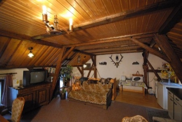 Die Ferienwohnung, ca. 25 m² groß, verfügt über eine 1 Kochnische mit Miniküche, einen Aufenthaltsraum mit Fernseher, einen Schlafraum und ein Bad mit Dusche und WC.