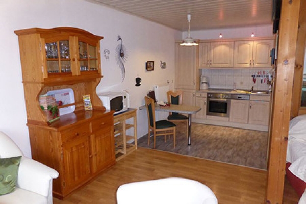 Die Ferienwohnung „Katzenkörbchen“ bietet Ihnen einen ausschweifenden Panoramablick in den Garten, unter dessen Bäumen es sich Schafe und Ziegen gut gehen lassen. Im Inneren der Ferienwohnung wird ein gemütliches Flair versprüht. Neben einem großen Wohnraum, bietet sie eine Küche, Diele, Bad mit Dusche und WC, 2 Schlafräume sowie eine große Terrasse mit eigenem Grill.