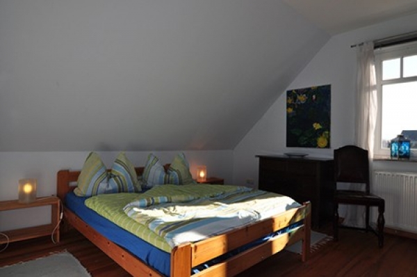 Die Ferienwohnung "Grüner Bereich" befindet sich im Obergeschoss eines Einfamilienhauses in ruhiger Lage, das 1999 errichtet wurde. Zur Verfügung stehen 2 Doppelbetten, 2 Einzelbetten und 2 zusätzliche Schlafsofas in drei Schlafzimmern. Außerdem gibt es eine gut eingerichtete Küche mit Essplatz, ein großes Wohnzimmer mit Holzofen, ein Bad und einen Wohnflur mit großem Esstisch.