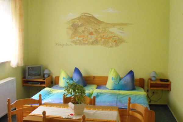 Malerisch eingebettet im Elbbogen am Fuße der Festung Königstein, im Herzen der Sächsischen Schweiz, liegt die Ferienwohnung Richter in Thürmsdorf auf dem Land. Die Ferienwohnung verfügt über einen separaten Eingang und bietet mit Aufbettung insgesamt Platz für 2 Erwachsene und 2 Kinder. Insbesondere für Wanderer und Mountainbiker bietet sich Thürmsdorf als Startpunkt für große und kleine Touren unterschiedlichster Schwierigkeitsgrade an. Urlaub auf dem Land bedeutet in diesem Fall, dass Bergsteiger und Kletterer in der Nähe unzählige Felsformationen bezwingen können. Als Belohnung winkt ein grandioser Ausblick in die wild-romantische Natur des Elbsandsteingebirges bis hin ins Böhmische Bergland.