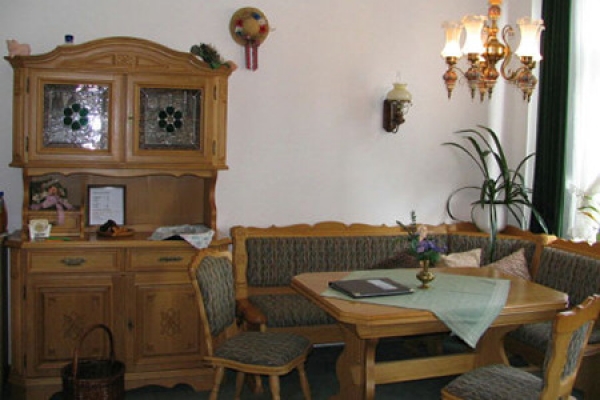 Für einen guten Start in den Tag bietet die Pension Ihnen einen großen, hellen mit viel Liebe gemütlich eingerichteten Frühstücksraum.