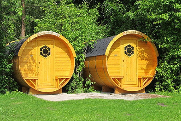 Der 4-Sterne Campingplatz Häsle liegt inmitten ausgedehnter Wälder im Herzen des Ellwanger Seenlandes in der Erlebnisregion Schwäbische Ostalb. Eine besondere Übernachtungsmöglichkeit sind die beiden Schlaffässer mit anliegendem Pavillon, die Sie buchen können. Sie verfügen über ein 2 x 2 m-Bett, einen ausziehbaren Tisch mit Sitzbänken sowie genügend Stauraum für Ihr Gepäck unter dem Bett und in den Sitzbänken. Stromanschluss und Infrarot-Heizung sind inklusive. Vor den Fässern befindet sich ein Sitzpavillon. Für Kurzurlauber und Besucher ist auf der Campingwiese immer genügend Platz. Der Gemeinschaftsraum bietet ein gemütliches Ambiente für Gruppen oder private Feiern. Es gibt die üblichen sanitären Anlagen, im Waschhaus eine große Familiendusche, ein Babybad mit Heizstrahler sowie eine rollstuhlgerechte Einrichtung. Direkt am Häsle-Stausee gelegen, wird für die Campinggäste ein kleiner Sandstrand angeboten.
