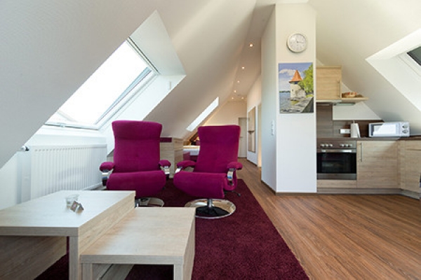 Ferienappartements Sieber liegt am Bodensee und im Dreiländereck zwischen Deutschland, Österreich und der Schweiz. Die große Auswahl an Appartements in verschiedenen Größen, ist für Sie ganzjährig geöffnet. Die Ferienappartements erreichen Sie über 2 getrennte Treppenhäuser. Über das vordere Treppenhaus am Haupteingang erreichen Sie 10 exklusive 5-Sterne Luxusappartements mit herrlichem Seeblick. Diese Wohnungen verfügen über Schlafzimmer mit Boxspringbetten, Bäder, exklusiver Einbauküchen, TV und Mini-Stereoanlage. Über das hintere Treppenhaus gelangen Sie in die 6 komfortablen und gemütlich eingerichteten 3-Sterne Ferienappartements mit Blick zum See. Diese Wohnungen haben eine komplett eingerichtete Kombiküche mit gemütlicher Sitzecke, Stereoradiowecker, WLAN und TV. Ihnen steht ebenso eine große Liegewiese mit Gartenmöbeln und Liegen zur Verfügung wie auch Parkplätze und eine abschließbare Halle für Fahrräder.