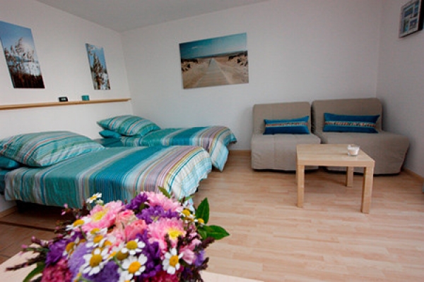 Die 4 Ferienwohnungen am Seepark Falk sind nur wenige Schritte vom Freizeitgelände des Seeparks entfernt. Die Wohnungen sind unterschiedlich groß, zwischen 26-60 m². Die Wohnungen sind hell und gemütlich eingerichtet. Alle Wohnungen besitzen ein Wohn-Schlafzimmer, eine Kochmöglichkeit und ein Bad mit Dusche und WC. Zur Ausstattung gehören TV, Radio, Telefon und WLAN.