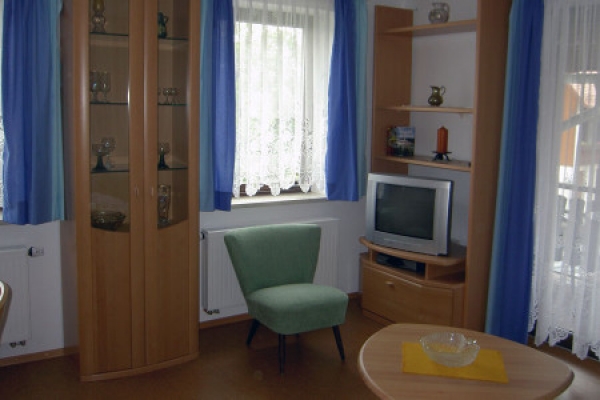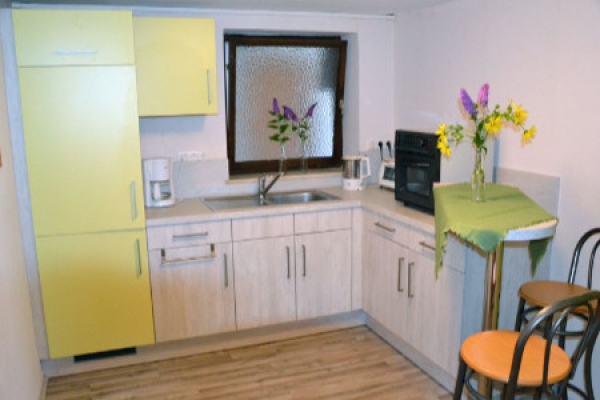 Die 45 m² große Ferienwohnung „Damhirschblick“ verfügt über 2 getrennte Schlafräume, 1 Wohnraum mit Kochnische, Dusche und WC.