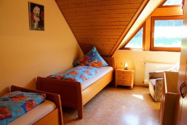 Die 2 Ferienwohnungen im Gästehaus, die 70 m² groß sind, verfügen über 4 Zimmer und liegen auf 2 Etagen, genügend Platz für Familien mit Kindern. Die Ferienwohnungen haben einen eigenen Eingang. Sie liegen in Südlage, wohin auch der Balkon ausgerichtet ist. Sowohl auf der unteren als auch oberen Etagen finden Sie ein WC vor.