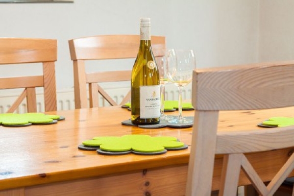Die 3-Sterne und 45 m² große Ferienwohnung „am Eck“ für 2 Personen hat ein Wohn- und Schlafzimmer, eine Einbauküche, ein Bad, eine Freiterrasse, TV, einen separaten Eingang und WLAN.