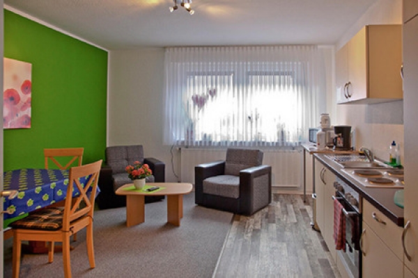 Gäste übernachten in hell und freundlich eingerichteten Appartements mit guter Ausstattung. Garten und Wintergarten laden zum Verweilen ein. Es gibt viele Sitzgelegenheiten und einen Grillplatz. Die Unterkunft ist sowohl mit dem Auto, als auch mit öffentlichen Verkehrsmitteln sehr gut erreichbar.