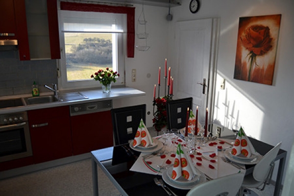 Erholung mit Panoramablick von nahezu jedem Zimmer haben sie ebenfalls im „Haus Gartenpanorama“. Genießen Sie die warmen Sonnenstunden auf der Baumbank, während Sie sich den frisch gepflückten Apfel auf der Zunge zergehen lassen. Sie können frische Kräuter aus dem Garten pflücken und laue Sommerabende am Grill mit Fernblick genießen.